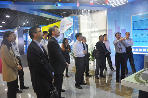 先进院副院长吕建成(右二)向来宾讲解先进院发展情况