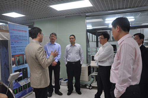在成果展示厅,吕建成向来宾介绍了先进院的建院背景、发展历程,从产学研资各方面入手,深入介绍了先进院自建院以来所取得的各项成果,并表示双方在中医领域有共性,可以进一步合作。随后,来宾参观了光伏太阳能、MRI与中医实验室,并就相关领域的技术特性、研究现状等,双方进行了交流探讨。