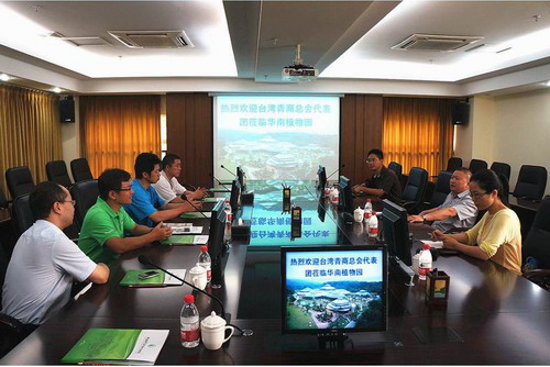 6月8日,台湾青商会常务副会长黄健信等一行在广州市人民政府台湾事务办公室相关负责人陪同下访问中科院华南植物园,并就有关项目的合作进行座谈。