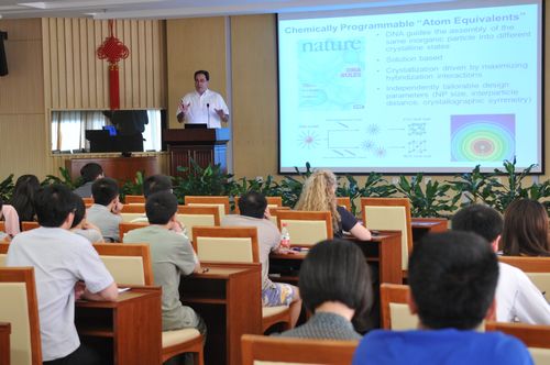 6月2日,应王江云研究员的邀请,美国三院院士、奥巴马总统科技顾问Chad Mirkin教授访问中科院生物物理研究所,并作题为Spherical Nucleic Acids(SNAS): A New Frontier in Molecular Diagnostics and Gene Regulation的学术报告。王江云研究员主持了本次报告,柯沙研究员等数十名科研人员和研究生聆听了Chad教授的精彩报告。