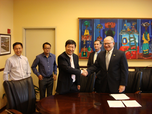 在访问佛罗里达国际大学期间,代表团分别与该校西南环境研究中心常务副主任Leonard J. Scinto博士和地球与环境系副主任Mahadev Bhat博士以及该部门的多位教授展开了学术交流和合作意向讨论,陈进与佛罗里达国际大学校长Mark Rosenberg博士代表合作双方签署了关于热带植物学与保护的合作备忘录。