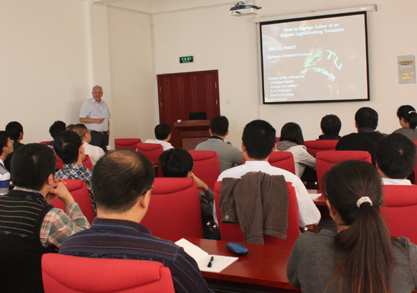 Heinz von Seggern教授是有机发光晶体管领域的开拓者,已发表学术著作250篇(引用数达3800次),拥有5项研究专利。他在报告中介绍了发光晶体管(OLET)的基础知识及近来在有机发光晶体管发光颜色及机理研究方面取得的重要成果,展示了如何改变有机发光晶体管的发光颜色的实验手段及相关物理机制的理论研究。