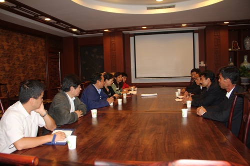翟明国院士(左三)与朝鲜代表团讨论合作研究事宜