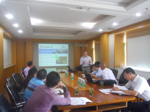 座谈会上,吴能友代表广州能源所对Martin J Attrill教授一行的来访表示欢迎,并介绍了广州能源所的基本情况及主要研究方向。Martin J Attrill教授介绍了普利茅斯大学基本情况以及海洋研究所的概况、研究方向和各研究中心,随后重点介绍了该研究所正在执行的与波浪中心项目相关的研究规划。Adam Corney先生介绍了该研究所的主要研究设备以及西南海洋能源园区的主要职能。海洋能实验室游亚戈研究员主要介绍了广州能源所在波浪能发电装置方面的研究情况。双方在座谈会上进行了热烈的交流与讨论。