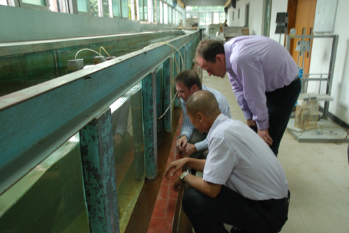 会后,Martin J Attrill教授一行参观了海洋能实验室。游亚戈重点介绍了海洋能实验室最新研究的鹰式波浪能发电装置的运行原理,Martin J Attrill教授一行对该装置表示出极大的兴趣。