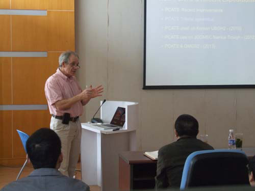 Peter Schultheiss博士结合自己多年实际工作经验作了题为Onboard Core Analysis and Measurements in Recent Gas Hydrate Expeditions的报告。报告主要展示了近年韩国和日本天然气水合物钻探过程中岩心分析和测试技术与成果。随后,两位专家与水合物研究中心青年科研骨干就水合物地球化学方面的学术问题进行了深入的交流。