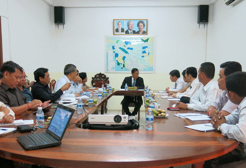 在柬埔寨环境部举行的洽谈会议上,双方根据共同完成的《柬埔寨国家植物园建设可行性研究报告》,对植物园的规划、建设方式、建成后的运转等作了深入讨论,进一步达成了推进项目立项和建设的共识。随后,陈进向会议报告了“金边生物多样性中心”(Phnom Penh Biodiversity Center, PPBC)项目建议,柬方对这一计划给予了高度的关注,并表示愿意积极支持和协助中国科学院在柬埔寨建立金边生物多样性研究中心。