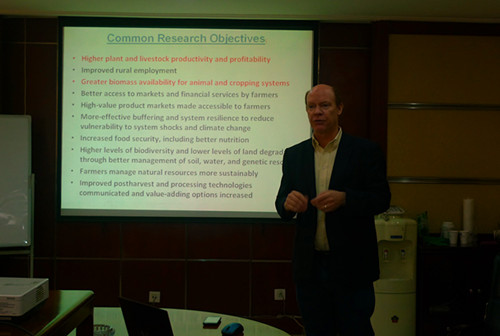 座谈会上,新疆生态所所长陈曦对William Payne的来访表示欢迎,并简要介绍了研究所的研究领域。William Payne就国际农业研究咨询组干旱区农业系统研究项目的宗旨、研究区域以及研究目标进行了说明,并介绍了其在德克萨斯农业和工程大学开展的有效提高高粱蒸腾作用的系列研究工作。
