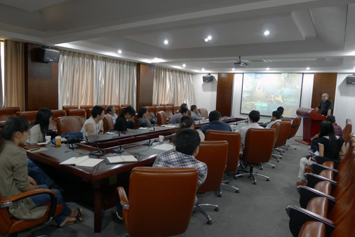 10日,Davis教授为水生所科研人员和研究生作了题为Animal-borne video and data recorders as a method of studying marine life的学术报告。他在报告中详细介绍了动物载影像数据记录技术的发展历程及其在海洋动物行为学研究等方面取得的成果。Davis教授通过展示采用该技术获得的海豹、鲸鲨、抹香鲸等大型海洋动物的清晰影像,对动物运动、捕食等行为数据的分析,深入探讨了海洋动物的行为能量策略。报告激起了大家对于海洋动物行为及能量学研究的浓厚兴趣。报告结束后,水生所与会专家及研究生与Davis教授就该技术在长江大型珍稀水生动物行为能量学研究等方面的应用展开了热烈讨论。