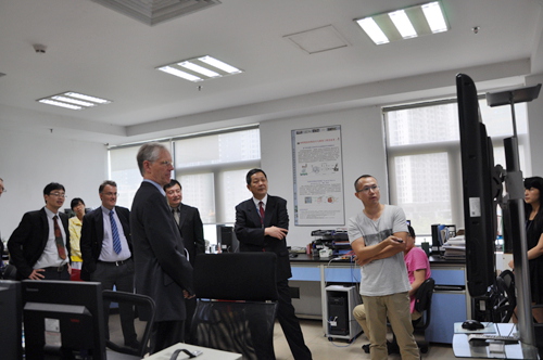 产业发展与资源处处长毕亚雷介绍先进院在深圳本地吸引人才的政策,并就先进院的发展情况、科研队伍及机器人、电动汽车、高端医学影像、低成本健康等重点突破领域向来宾作了详细介绍。随后,Rawlins教授一行重点参观了磁共振成像实验室、神经假肢控制技术实验室、光-基因神经调控实验室、医学光声成像实验室等,双方均对转化医学研究方面的合作有浓厚兴趣。