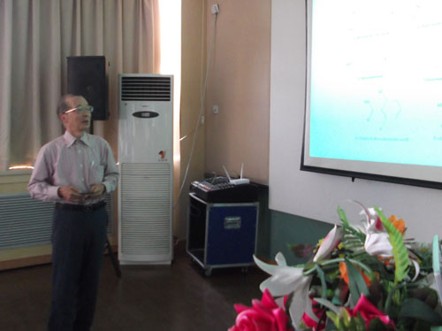 访问期间,Hidaka教授作了题为Photoassisted defluorination for pharmaceuticals and fluorinated substrates by Ga2O3 or TiO2 for aquatic remediation的学术报告。报告中Hidaka教授首先讲述了光催化的起源及其在环境保护领域的应用方向,随后重点针对当前研究热点——含氟有机污染物的脱氟、降解问题展开了详细讨论,如氟西汀药物在光催化降解过程中的反应位点分布、断键位置、产物分析及分子中主要官能团的转化过程等;他还介绍了Ga2O3在无氧条件下光催化脱氟的性能,以及反应体系中Pt含量、pH值和目标污染物分子特性等因素对脱氟效率的影响。报告会后,Hidaka教授与新疆理化所环境科学与技术研究室相关科研人员和研究生就报告内容和感兴趣的问题进行了探讨与交流。