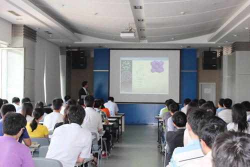 来访期间,Antonio H. Castro Neto教授为金属所科研人员和研究生作了题为New Directions in Materials Science and Technology: Two-Dimensional Crystals的精彩报告,报告前,张健副所长为Neto教授颁发了李薰讲座奖奖牌,颁奖仪式和报告会由先进炭材料研究部主任成会明研究员主持。此次来访,Neto教授与先进炭材料研究部的科研人员就石墨烯材料相关问题进行了深入交流,并参观了先进炭材料研究部实验室,双方对未来合作计划进行了讨论。