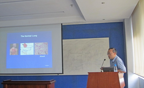 特发性肺纤维化(idiopathic pulmonary fibrosis,IPF)是一种原因不明、特发性肺纤维化、以弥漫性肺泡炎和肺泡结构紊乱最终导致肺间质纤维化为特征的疾病。约15%的IPF病例为急性型,常因上呼吸道感染就诊而发现,多于6个月内死于呼吸循环衰竭。绝大数IPF为慢性型,平均生存时间只有3.2年。围绕着IPF,Qiang Ding副教授向大家介绍了IPF的症状、病理变化、临床表现以及他们在IPF治疗方面的研究进展。