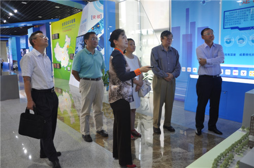 吴小丽向陈世松(右二)一行介绍先进院基本情况