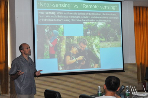 访问期间,Chuck Cannon教授作了题为Southeast Asian Land Area Dynamics during the Quaternary Period and Its Relationship to Plant Species Diversity and Forest Types的学术报告。Cannon教授首先简单介绍了刚刚召开的NSF-NSFC Field Course: Near-sensing Asian Tropical Forests,强调植物科学研究与工程设计合作对植物科学研究技术进步的重要性。然后重点介绍了东南亚生物地理研究的模型系统,并深入探讨了第四纪东南亚特别是巽他大陆架森林的分布。报告内容丰富,现场气氛活跃。会后,大家对东南亚的生物地理产生了浓厚的兴趣,提出了很多跟自己的研究工作相联系的问题并与Cannon教授进行了深入的讨论。
