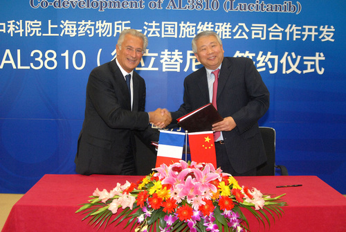 9月13日,中科院上海药物研究所(以下简称“上海药物所”)和法国制药企业施维雅(Servier)公司(以下简称“施维雅”)签订协议,双方联合在中国进行分子靶向候选抗肿瘤新药德立替尼(Lucitanib)的研发。