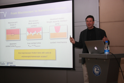 5月7日,耶鲁大学机械工程与材料科学系主任Udo D Schwarz教授到中国科学院兰州化学物理研究所进行学术交流,期间作了题为Friction-Area Scaling of Structural Lubricity: Linking Mesoscopic Friction with Atomic Principles的学术报告。