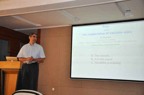 6月18日,欧洲空间局Gaia团队的Nami Mowlavi博士访问中国科学院国家天文台,为相关科研人员报告了Gaia项目的基本情况、目前运行状况以及变星的研究工作。Nami Mowlavi博士1995年从布鲁塞尔大学博士毕业,2007年加入Gaia团队,主要任务是进行变星的分析研究,2012年成为Gaia团队中变星研究小组的主要负责人。