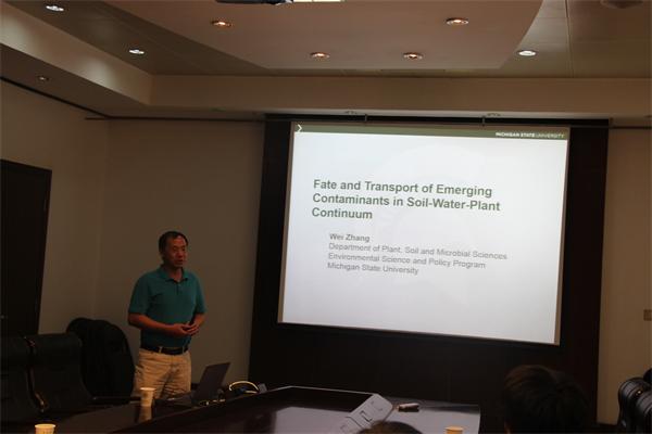 6月19日,应中国科学院土壤环境与污染修复重点实验室邀请,美国密歇根州立大学植物、土壤与微生物科学系助理教授张伟博士访问中国科学院南京土壤研究所,并作了题为Fate and Transport of Emerging Contaminants in Soil-Water-Plant Continuum的学术报告。研究所相关科研人员及学生30余人参加了交流报告会。