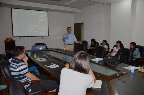 访问期间,Timothy教授分别就土壤有机碳稳定机制、木质素降解及其对碳循环的贡献、美国地球关键带观测(CZO)研究等领域的最新研究进展与该所研究人员及青年骨干和研究生作了深入的交流和探讨。并分别作了题为Soil organic matter dynamics in subtropical grassland in the southern US与Introduction Critical Zone Observation in US and US-China Ecopartnership for Environmental Sustainability的学术报告。报告内容引起了参会人员的强烈兴趣并展开热烈讨论,报告结束后,Timothy教授与该所相关青年骨干、研究生就实验设计、论文撰写、数据整理与分析等方面开展了详细的讨论,听取了相关科研骨干的工作进展报告,并提出了建议与指导意见,并就联合培养学生、合作发表论文等事宜初步达成了合作协议。