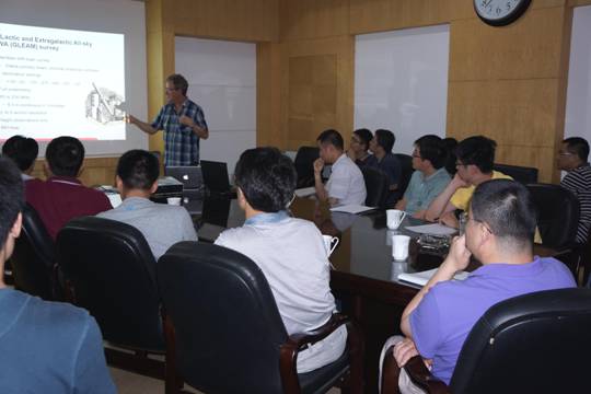7月8日下午,西澳大学(The University of Western Australia)国际射电天文研究中心副主任Lister Staveley-Smith教授到中国科学院紫金山天文台访问。访问期间,Lister Staveley-Smith教授与紫金山天文台台长杨戟、南极天文和射电天文研究部主任史生才、南极天文中心主任王力帆等进行了相关的学术交流与讨论,并参观了紫金山天文台毫米波和亚毫米技术实验室,随后Lister Staveley-Smith教授作了题为“Recent Results from the Australian SKA Site”的学术报告。
