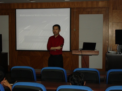 8月21日,受中国科学院合肥物质科学研究院智能机械研究所刘锦淮研究员的邀请,德克萨斯大学奥斯汀分校王正博士访问智能所,并在智能所六楼会议室作了一场题为“多材料多功能光纤传感器”的学术报告。