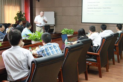 Mark Altwein的报告使得与会人员深入地了解了熔融石英玻璃制造工艺与激光损伤的关系。报告结束后,与会人员与Mark Altwein还就气泡和杂质的控制和测量方法、激光损伤机理、损伤阈值测量等问题进行了深入地讨论和交流,整个学术报告现场气氛热烈。