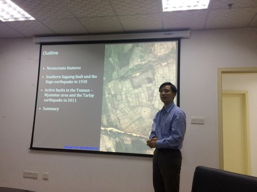 10月27日,应大地测量与地球动力学国家重点实验室的邀请,新加坡南洋理工大学王昱博士访问中国科学院测量与地球物理研究所,并作了题为Active tectonics of Myanmar: from the southern Sagaing fault to the Golden Triangle的学术报告。报告会由测地所副所长、大地测量与地球动力学国家重点实验室主任倪四道研究员主持,郑勇研究员和储日升研究员等20余位科研人员及研究生参加报告会。