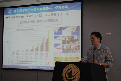 会议首先由湖北省图书馆学会会长万群华致辞。万群华向出席会议的各位科研图书馆工作委员会的成员代表表示欢迎,并感谢武汉分馆为各成员单位提供了一个宝贵的交流平台,希望通过此次研讨会,进一步加深各成员单位之间的交流合作,共同探索文献信息服务的新方法,新模式。