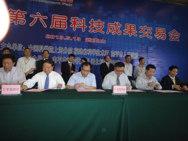 海西研究院参加了“5·13”活动中的南平市第六届科技成果交易会,推介超氧化物歧化酶项目(SOD)等科技成果,并就纳米硅碳材料、超氧化物歧化酶项目分别与福建远翔化工有限公司、福建百奥生物科技有限公司现场签约,实现项目对接。