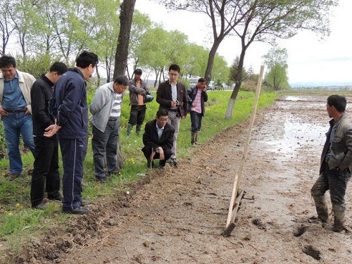 长春技术转移中心特邀请东北地理所齐晓宁研究员、汪洋研究员亲赴田间地头指导农民插秧、解疑,并先后到延边州八县市为水稻田测定垄向、垄距,保证项目顺利实施。