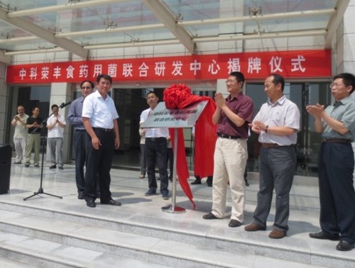 双方代表在山东东营国家农业科技园区共同为东营农业高新区中科荣丰生物科技产业园奠基。刘双江、山东荣丰食用菌有限公司董事长封金华在山东荣丰食用菌有限公司共同为“中科荣丰食药用菌联合研发中心”揭牌。