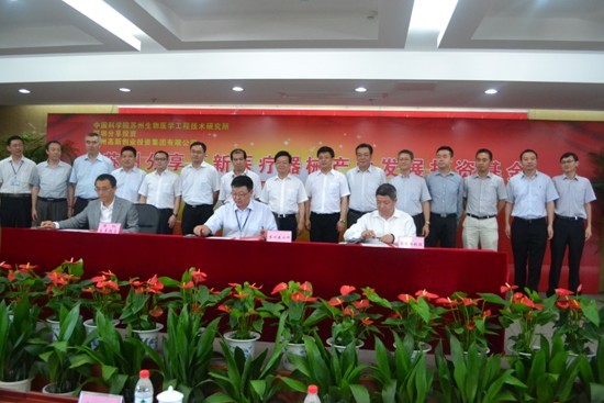 会上,苏州市委常委、苏州高新区党工委书记浦荣皋和苏州医工所所长唐玉国共同为配合该基金入选项目实施而成立的苏州国科医疗科技发展有限公司揭牌;唐玉国、分享投资合伙人白文涛和苏高新创投总经理闵建国签署了全面合作框架协议,成立“苏州分享高新医疗器械产业发展投资基金”;随后,投资基金代表与苏州医工所的四位项目负责人就其成果转化签署了投资意向书。