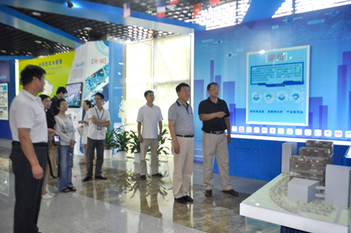 徐明亮向唐立峰(右二)一行介绍先进院情况