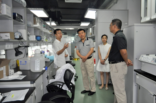 徐明亮向唐立峰一行介绍了先进院建院架构、人才优势、科研经费、产业转移转化、未来发展规划,深圳育成中心发展现状及未来规划等方面的情况;李红昌带领来宾重点参观了先进院细胞与分子生物学实验室、发育与再生生物学研究室、神经生理研究室、人体组织与器官退行性研究中心。唐立峰称赞先进院是一个“真正的科学圣地”,深圳育成中心则搭建了一个“非常好的平台”。