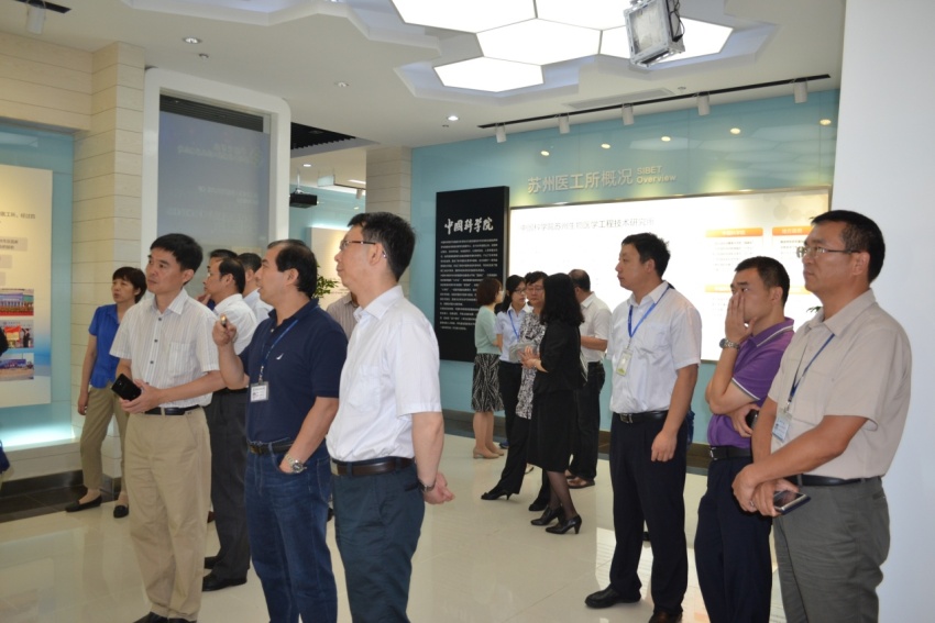 7月15日,江苏省科技厅副厅长夏冰、江苏省食品药品监督管理局安全总监王越以及相关业务处室负责人在苏州市科技局、苏州高新区及科技城相关人员的陪同下,来中科院苏州生物医学工程技术研究所考察调研。苏州医工所党委书记邓强以及相关管理部门人员接待了夏冰一行。