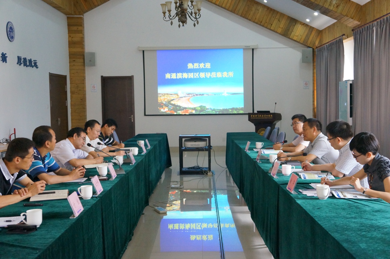 7月12日,江苏省南通市滨海园区管委会副主任顾学军一行4人到中科院海洋研究所调研,副所长杨红生、所长助理李超伦以及科研处、船舶运管中心相关人员参加了座谈。