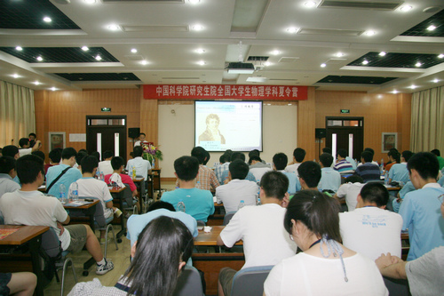 据介绍,中国科学院研究生院2011年全国大学生物理学科夏令营由中国科学院研究生院物理科学学院主办,中国科学院物理学科若干对口研究所(京内8个:物理研究所、声学研究所、高能物理研究所、理论物理研究所、力学所、工程热物理所、国家天文台、半导体研究所,京外6个:兰州近代物理研究所、上海应用物理研究所、合肥物质科学研究院、国家授时中心、紫金山天文台、上海天文台)协办。此次夏令营为首次举办,时间为7月22日至7月31日。在全国高校中招收物理学科(物理学、力学、工程热物理、核科学与技术、天文学)的大二、大三本科生,进行集中夏令营培训。活动期间,将充分利用中国科学院的学科优势和国内外优秀教育资源,邀请相关领域著名专家学者开设专题讲座、学科前沿报告;组织到物理学科对口的京内各研究所参观;以及组织参观北京若干著名景点。参加本次夏令营培训的学生将有机会被推荐为中科院免试研究生。