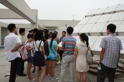 聆听专家报告之余,同学们还来到学科交叉部实验室、器件部实验室、加工平台和测试平台参观学习,对系统集成部的聚光型太阳能发电系统的参观也引起了同学们浓厚的兴趣。在同学与导师面对面交流环节中,同学们学习了查阅文献、设计课题,还观看了实验过程。