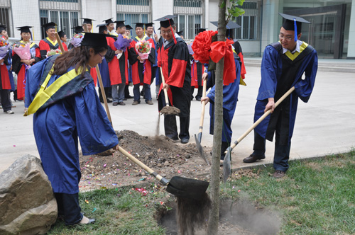 毕业典礼后,2011届毕业生在综合楼前种下了毕业纪念树,并与中心领导和导师们在科研楼前合影留念。