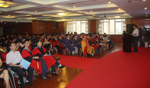 刘庆研究员代表导师发言。他希望,同学们在新的岗位上尽快熟悉社会,适应工作,立业成家,给力创新型国家建设,为中国科学院争光。