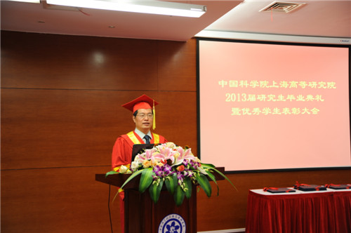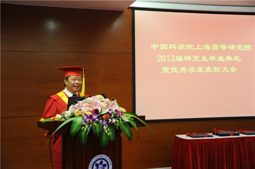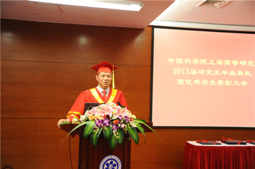 6月18日下午,中国科学院上海高等研究院(简称高研院)2013届研究生毕业典礼举行。高研院相关负责人、学位评定委员会委员、毕业生导师、全体在学研究生共六十多人参加了毕业典礼。毕业典礼由高研院党委书记、副院长孙予罕主持。高研院副院长、学位委员会主席姜标,高研院院长、副主席封松林,孙予罕为毕业生颁发毕业证书并拨正学位帽上的流苏。