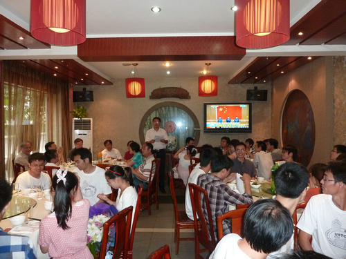 晚上6点,毕业生欢送仪式正式开始,中科大相关院系的老师应邀出席。欢送仪式由综合办副主任刘善文主持。副所长刘锦淮代表所领导为毕业生送上了真诚的祝福,希望他们在新的学习和工作岗位上继续发扬在所学习期间勤于钻研、勇于拼搏的优良作风,继续以优异的成绩为智能所增光添彩。葛运建研究员作为导师代表鼓励同学们在未来的人生旅程中一帆风顺、再创佳绩,并希望同学们常回所来看看曾经指导过自己的恩师、一起学习和工作的老师和同学们。何子军同学作为毕业生代表回顾了三年来在智能所学习和生活的点点滴滴,感谢导师们的辛勤培养,感谢研究所和学校为他们提供的良好的学习和生活条件。欢送晚宴在浓浓的师生和同学情谊中结束。