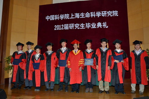 6月29日上午,中科院上海生命科学研究院2012届研究生毕业典礼举行,共有160余名毕业生参加本次毕业典礼。上海生科院院长、学位评定委员会主席陈晓亚院士以及学位委员会成员、导师代表、教育管理干部等出席了此次典礼。典礼由上海生科院院长助理刘小龙研究员主持。