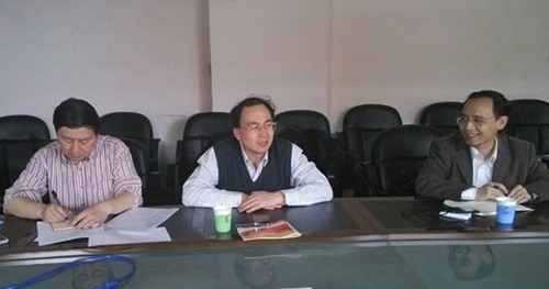 苏刚(中)副校长与长沙市一中副校长(右)商谈合作事宜