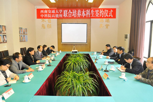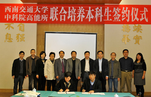 3月15日上午,中科院高能物理研究所与西南交通大学联合培养本科生签约仪式在西南交通大学举行。仪式由西南交通大学物理科学与技术学院党委书记吴建乐主持,高能所党委书记兼副所长王焕玉、西南交通大学副校长冯晓云代表各方在协议书上签字。