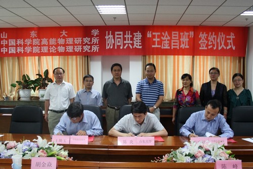 6月13日,中国科学院高能物理研究所、中国科学院理论物理研究所与山东大学协同共建“王淦昌班”签约仪式在山东大学物理学院举行。山东大学副校长陈炎、高能物理研究所党委书记兼副所长王焕玉、理论物理研究所副所长陈晓松等出席签约仪式。仪式由物理学院院长陈峰主持。