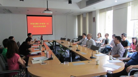 8月5日,安徽大学研究生院副院长黄仿伦、健康科学研究院副院长张部昌到昆明动物研究所进行交流访问,针对目前校所联合培养研究生存在的问题,以及如何进一步推进联合培养研究生工作与昆明动物所所领导、研究生导师、研究生代表进行了座谈。会议由党委书记、副所长郗建勋主持。