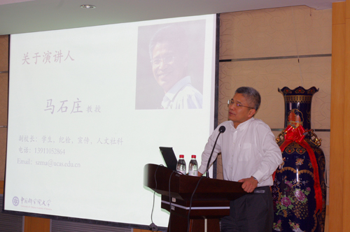 马石庄由“人,为什么活着?”这个人生的最基本问题出发,结合亲身经历,通过生动的叙述让在场学生感悟责任,了解使命,懂得奉献。随后,他从“未见胜负的论战”、“人生观挥之不去”、“新生代困惑依旧”和“人的感性与实践”四个方面讲述整个报告内容。通过对“20年代的科玄论战”、“40年代的西南联大精神”及“60年代的知识青年上山下乡”“80年代的人生的意义是什么”“2000年的科学主义之争”等极富时代特色、深深打上时代烙印之物的介绍和阐释,马石庄指出,人生观是动态的,具有强烈的时代性,有关它的论战从未停息,但相对于麻木、僵化状态,这样的论战所带来的彷徨、苦闷正是历史的进步。
