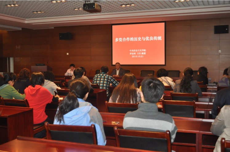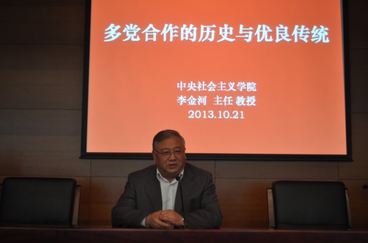 根据研究所群众路线教育实践活动的总体安排,为加强研究所统一战线工作,增强党员群众对各民主党派的理解和认识,10月21日上午,中央社会主义学院统一战线理论教研室主任李金河教授应邀来所讲授《多党合作的历史与优良传统》,副所长、党委副书记邢雪荣出席会议并主持讲座。